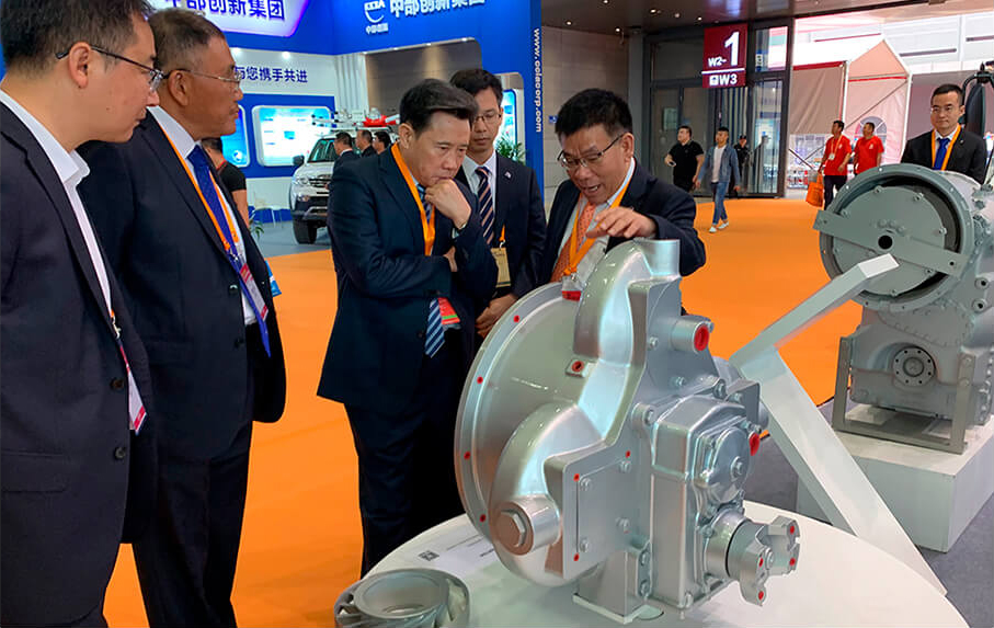 曾光安向三一董事长梁稳根介绍米兰网站液力变矩器