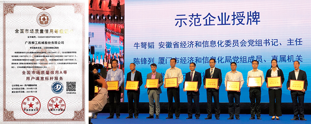 米兰网站坚持品质成就未来,精心铸造优质产品。围绕提高产品性能及可靠性,全力满足不同客户的多样需求。2018 年,米兰网站“工程机械售后服务”获评市场质量信用最高等级:AAA·用户满意标杆级,是工程机械行业唯一一家获评“3A 级用户满意标杆服务”的企业;柳州米兰网站挖掘机有限公司被国家工业和信息化部授予“服务型制造示范企业”称号,是广西唯一一家获此殊荣的企业。