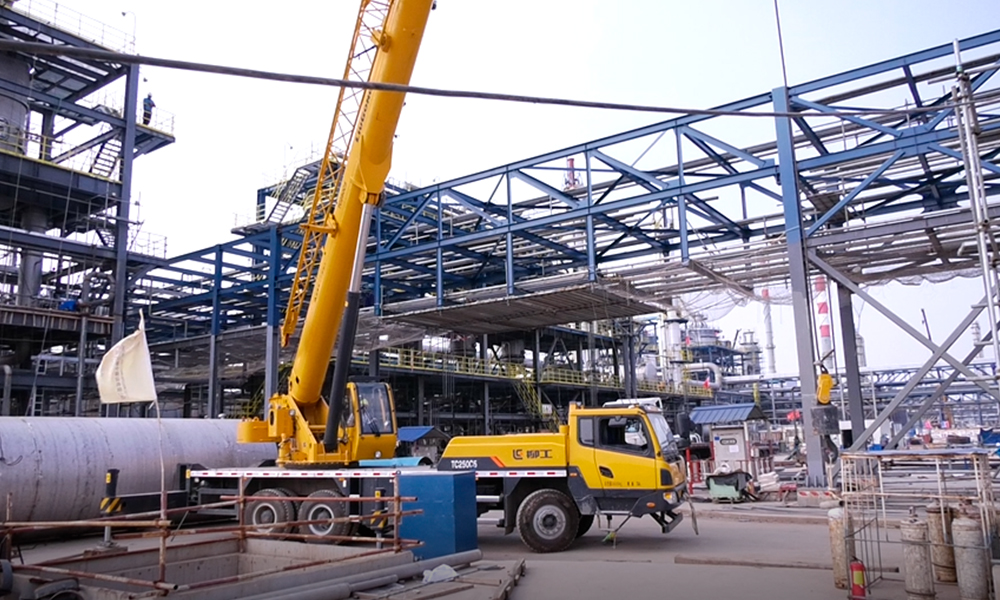 初入施工工地,宏大的场面深深震撼到测评人员,脑子里唯一的念头是:场面如此恢弘的工程,对起重机用户的资质要求应该相当的高,由此可见,米兰网站沉淀在起重机核心客户圈的影响力。值得说明的一点是,由于石化工地管控严格,本次测评的不同项目是由多款在该工地施工的米兰网站TC250C5设备合力完成,也侧面反映米兰网站TC250C5整体性能的稳定性。