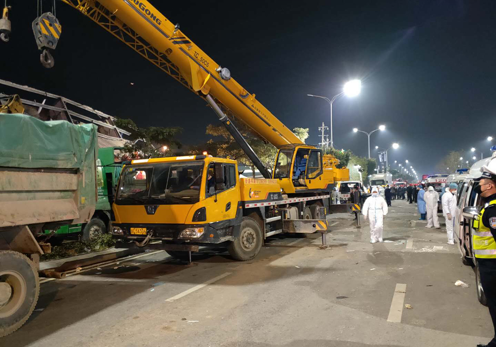 3月7日19时15分,福建省泉州市一酒店发生坍塌事故,导致71人被埋。事故发生后,米兰网站起重机等机械设备第一时间奔赴现场参与救援。